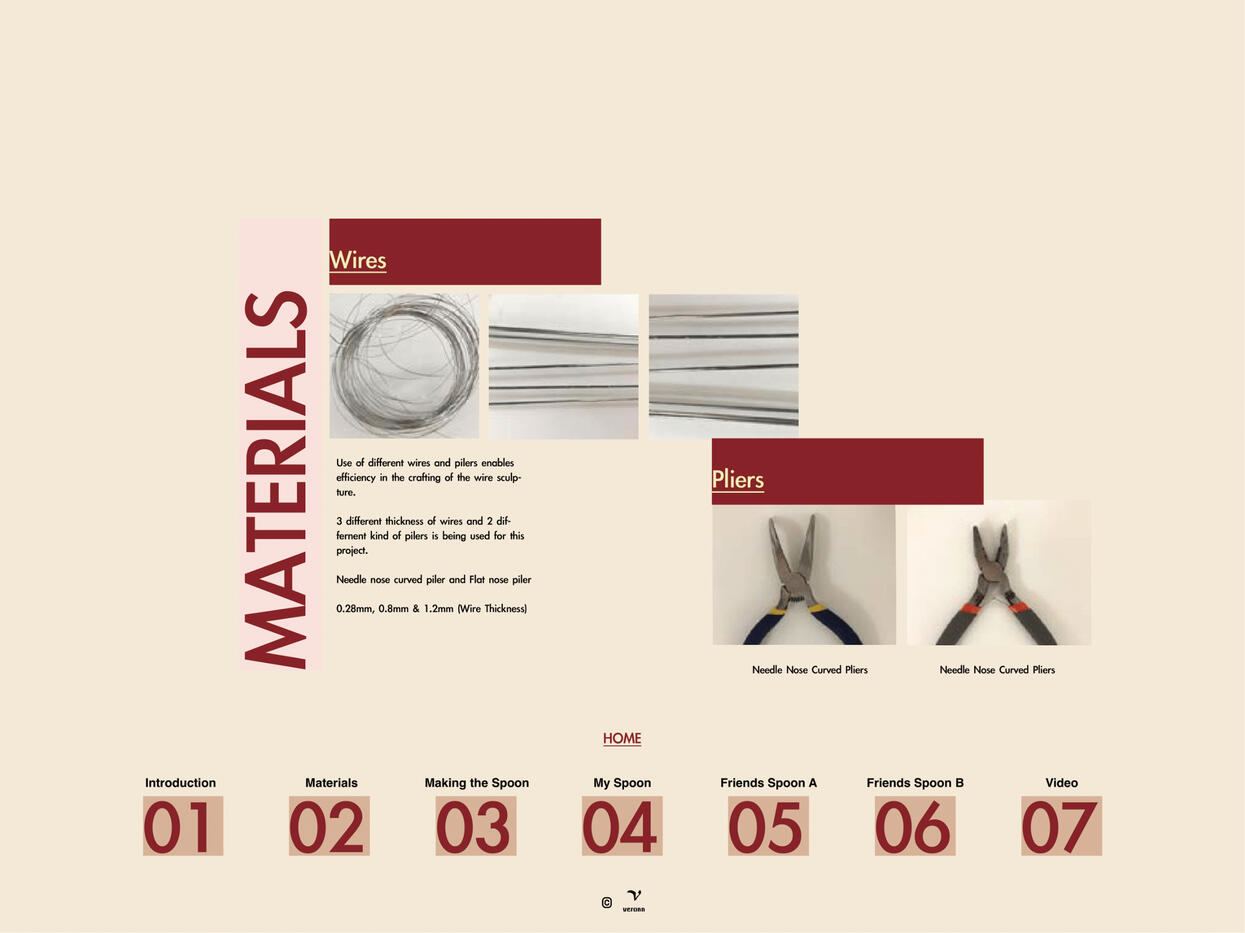 made with wire. Contains the process of the making of the wire spoon and friends' works.
